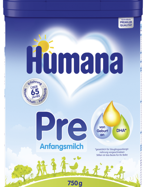 Was ist Humana Pre Anfangsmilch?Humana Pre Anfangsmilch ist eine Säuglingsanfangsnahrung, die als Alternative zur Muttermilch für die Ernährung von Säuglingen ab Geburt gegeben werden kann, wenn sie gestillt werden können oder sollen. Auch zur Zufütterung beim Stillen ist Humana Pre geeignet. Sie ist genau auf die Ernährungsbedürfnisse eines Baby von Geburt an abgestimmt, das heißt, sie ist so zusammengesetzt, dass sie den Nährstoffbedarf eines Säuglings im ersten Lebensjahr deckt und alle gesetzlich vorgeschriebenen Nährstoffe enthält.