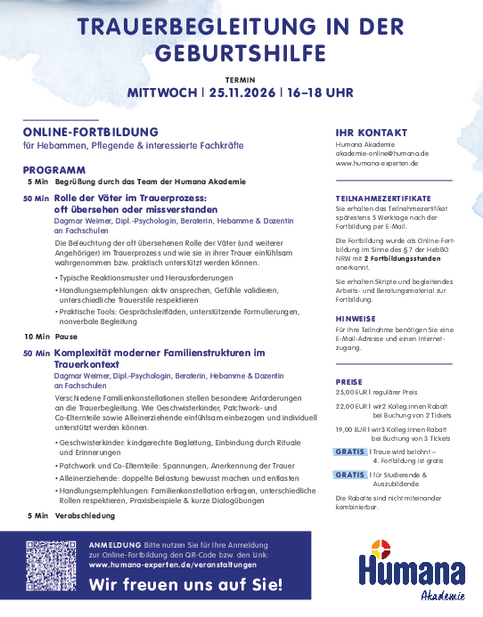 In der Begleitung trauernder Familien ist es essenziell, die Vielfalt individueller Trauerwege sichtbar zu machen und anzuerkennen. Mit Fokus auf kindgerechte Begleitung, Entlastung und die Rolle von Hebammen und Fachkräften als Brückenbauer:innen zwischen Betroffenen und dem System.